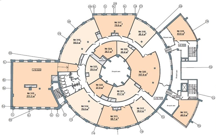 Со второго по пятый этаж здания занимают офисные помещения общей площадью 2,4 тыс. кв. м.